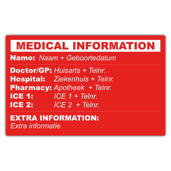 Je kunt eenvoudig je keuze maken voor een: Gastric Bypass pasje, Gastric Sleeve pasje, Mini Gastric Bypass pasje, allergie pasje, DNR-reanimatie pasje of epilepsie pasje. Elk pasje is ideaal om altijd bij je te dragen – niet alleen voor noodsituaties waarin hulpverleners snel inzicht moeten hebben in je medische achtergrond, maar ook voor dagelijks gebruik, bijvoorbeeld in restaurants om discreet aan te geven dat je kleinere porties nodig hebt of een allergie hebt. Handig, praktisch en onmisbaar!